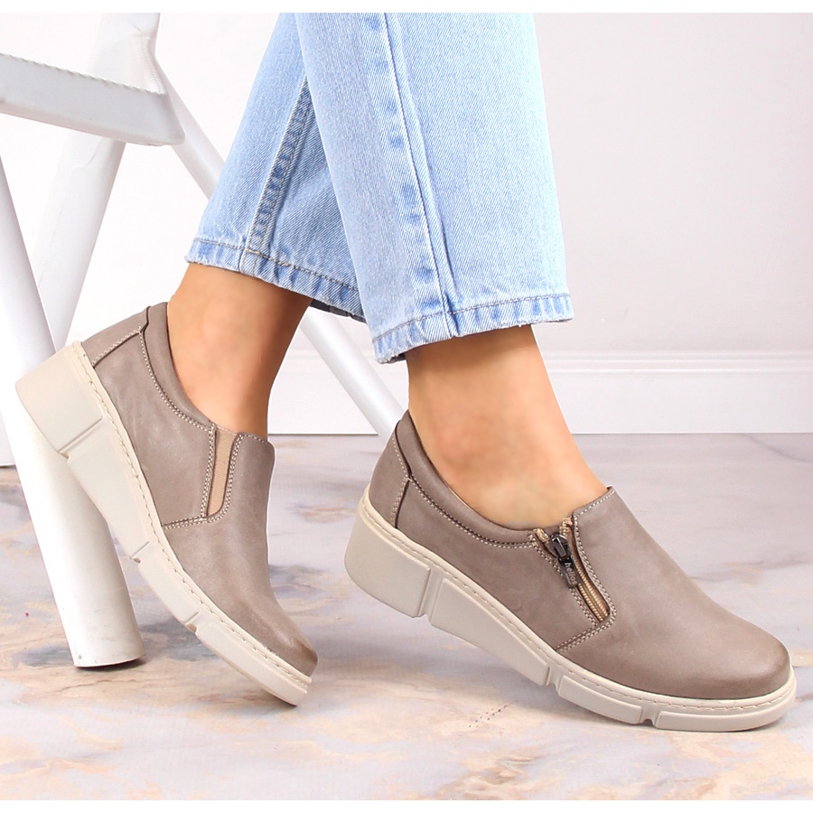 Yksityiskohdat: Naisten mukavat nahkaiset kiilakengät beige Helios 404-02