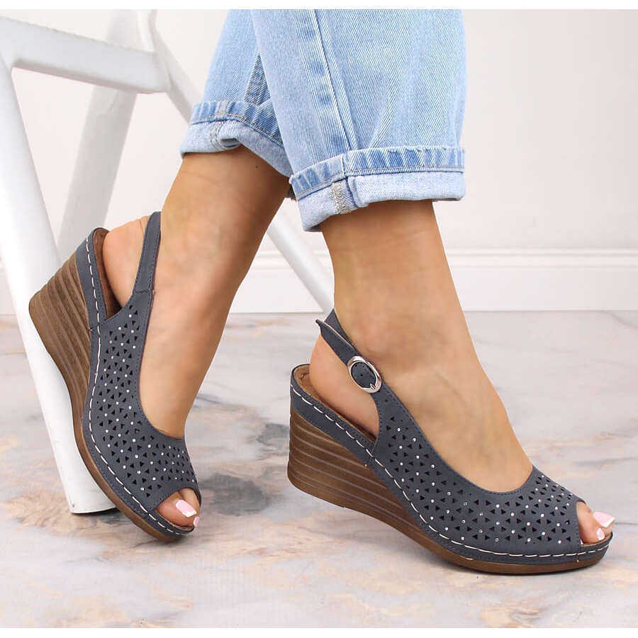 Yksityiskohdat: Naisten mukavat sandaalit kiilalla zirkoneilla laivastonsininen eVento 0972