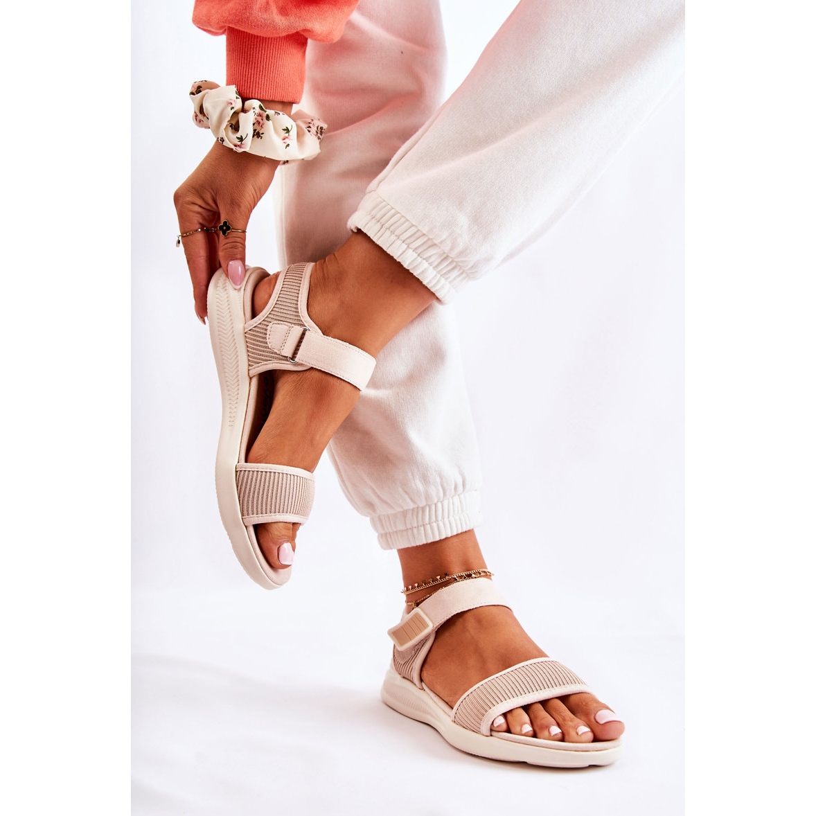 Yksityiskohdat: PE1 Naisten mukavat sandaalit tarranauhalla beige Sidney