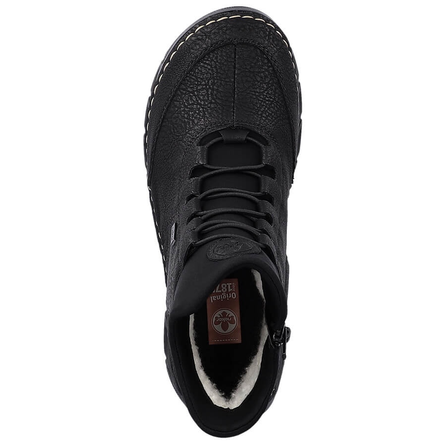 Yksityiskohdat: Naisten mustat eristetyt saappaat Rieker 55069-00