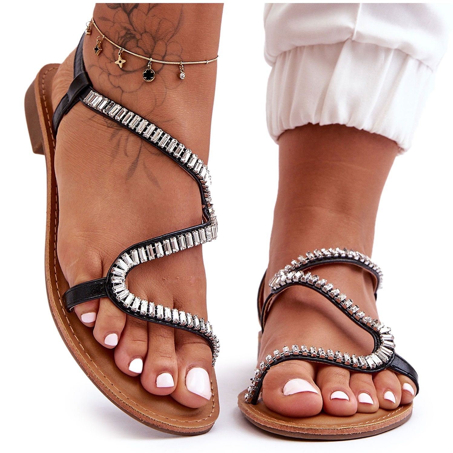 - Hellävaraiset koristeet tekevät sandaaleista, jotka sopivat sekä päivittäisiin että tyylikkäimpiin tyylityksiin.