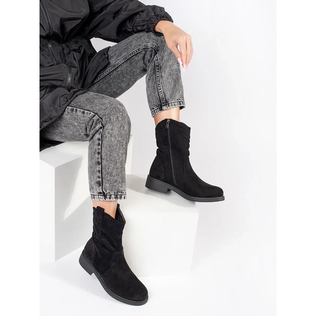 Tapaa mustien mokkanahkaisten naisten cowboy -saappaat toisesta tuotemerkistä, jotka yhdistävät tyylin ja mukavuuden. Nämä tyylikkäät kengät ovat loistava valinta joka päivä, ihanteellinen naisille, jotka arvostavat muoti ja mukavuutta. Ekologisesta mokkanahasta valmistettu mustana, ne näyttävät erittäin tyylikkäiltä, ja heidän rento tyylinsä on helppo yhdistää erilaisiin asuihin.