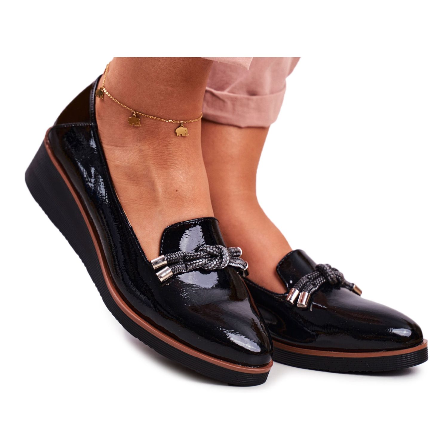 Yksityiskohdat: Vinceza Naisten mustat mokkasiinit lakattu Abba -kiilalla