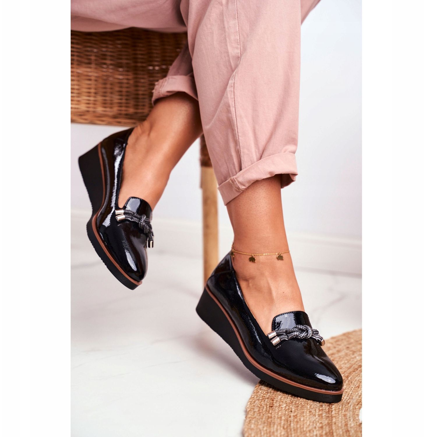 Kaikkiin yksityiskohtiin kiinnitetyissä mokasiineissa on luonnonnahkainen sisäosa, joka takaa erinomaisen hengittävyyden ja raikkauden tunteen koko päivän. Matala, 4 cm korkea kiila lisää hienovaraista eleganssia ja samalla optisesti hoikentaa vartaloa tehden jokaisesta tyylistä naisellisempaa ja aistillisempaa.