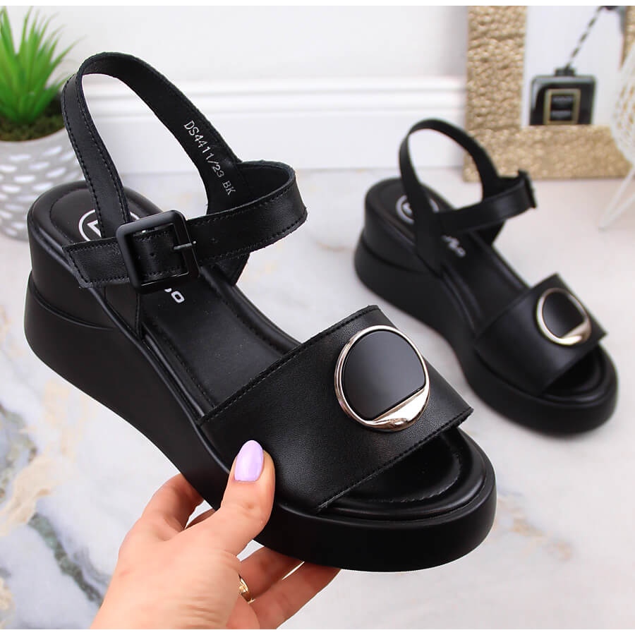 Yksityiskohdat: Naisten mustat nahkaiset kiila sandaalit Filippo DS4411