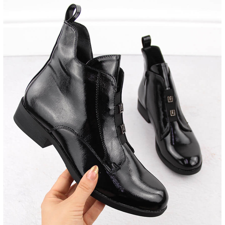Saappaat on eristetty miellyttävällä kosketus turkista, mikä tekee niistä täydellisen valinnan viileämpiin päiviin. Kauniisti hohtava ylempi, joka on valmistettu ekologisesta lakallisesta ihosta ja hienovaraisista koristekivistä, jotka koristavat tämän mallin, antavat sille ainutlaatuisen hehkua ja tyylikkyyttä. Pyöreä nenä- ja vetoketjullinen kiinnitys varmistaa mukavuuden ja helpottaa laittamista.