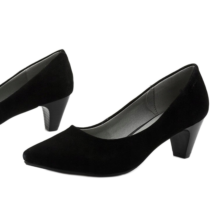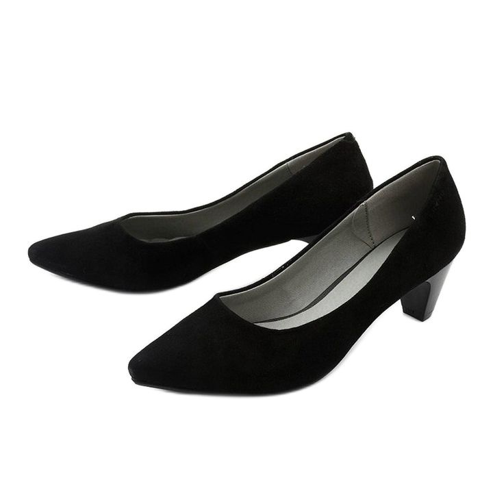 Ynisolan mustat naisten korkokengät ovat täydellinen yhdistelmä eleganssia ja mukavuutta, ja ne sopivat moneen tyyliin. Ekologisesta mokkanahasta valmistetut klassiset kengät ilahduttavat yksinkertaisella, minimalistisella muotoilulla ilman tarpeettomia koristeita. Musta päällinen ja pyöristetty mantelin muotoinen kärki tekevät näistä pumpuista universaaleja ja helppoja yhdistää erilaisiin asuihin.