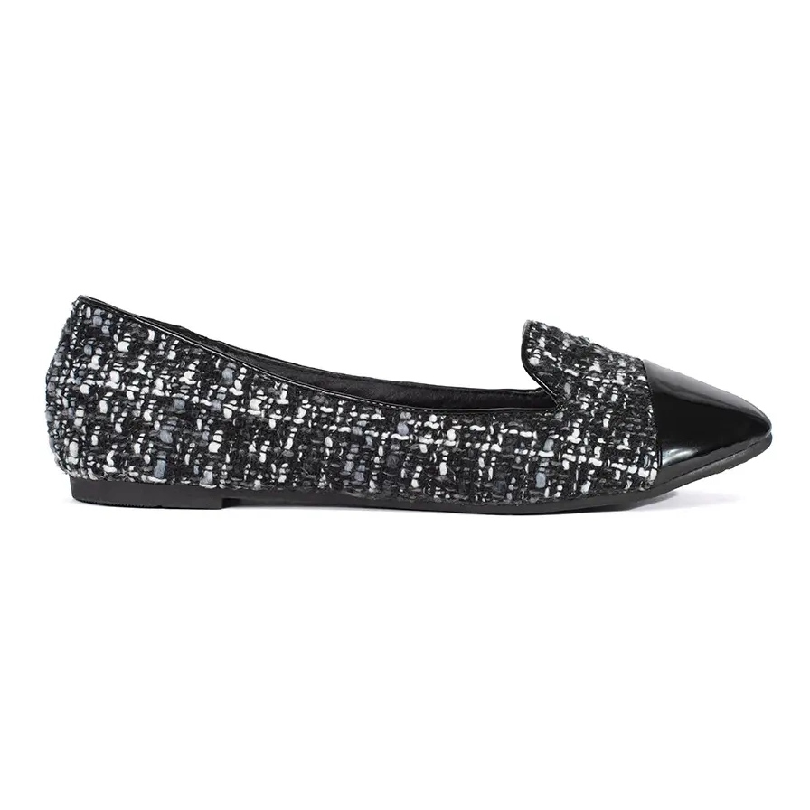 Yksityiskohdat: Naisten mustavalkoiset litteät ballerinakengät