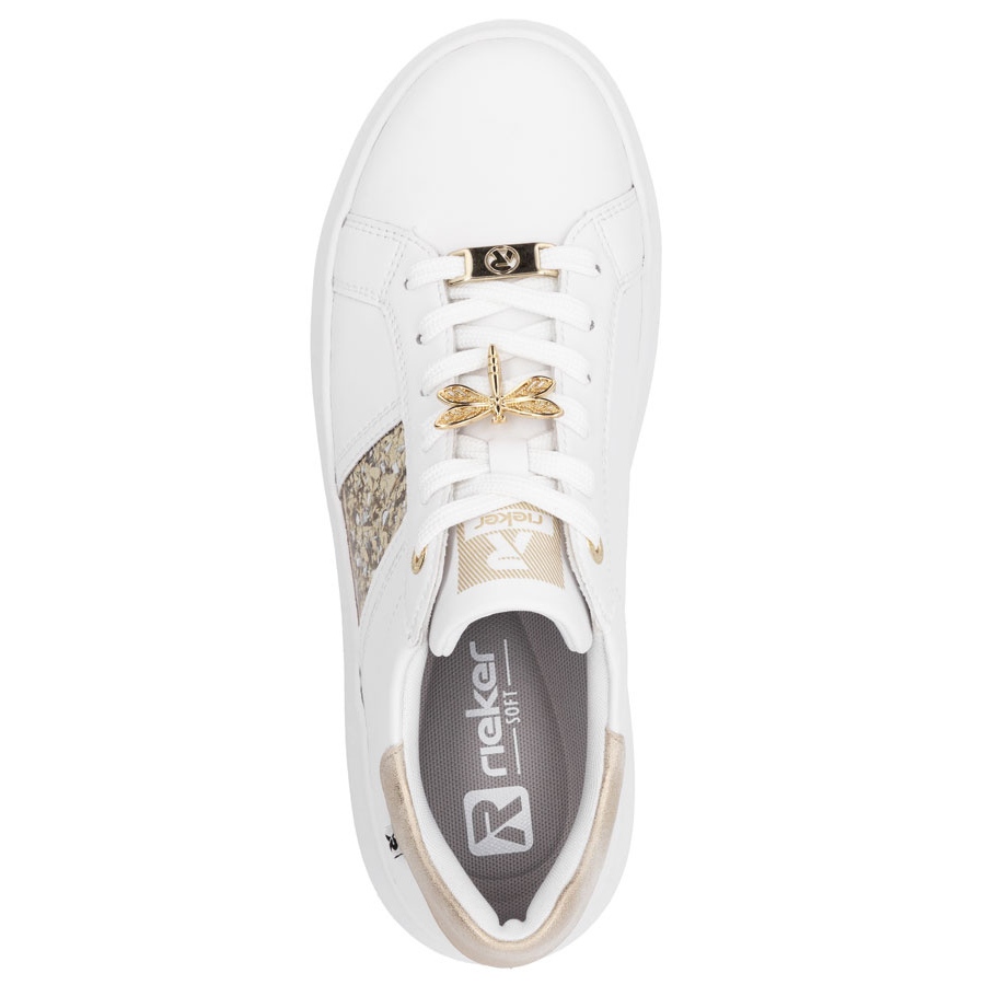 Yksityiskohdat: Naisten nahka-lenkkarit valkoisella Rieker 1202-82 -alustalla valkoinen