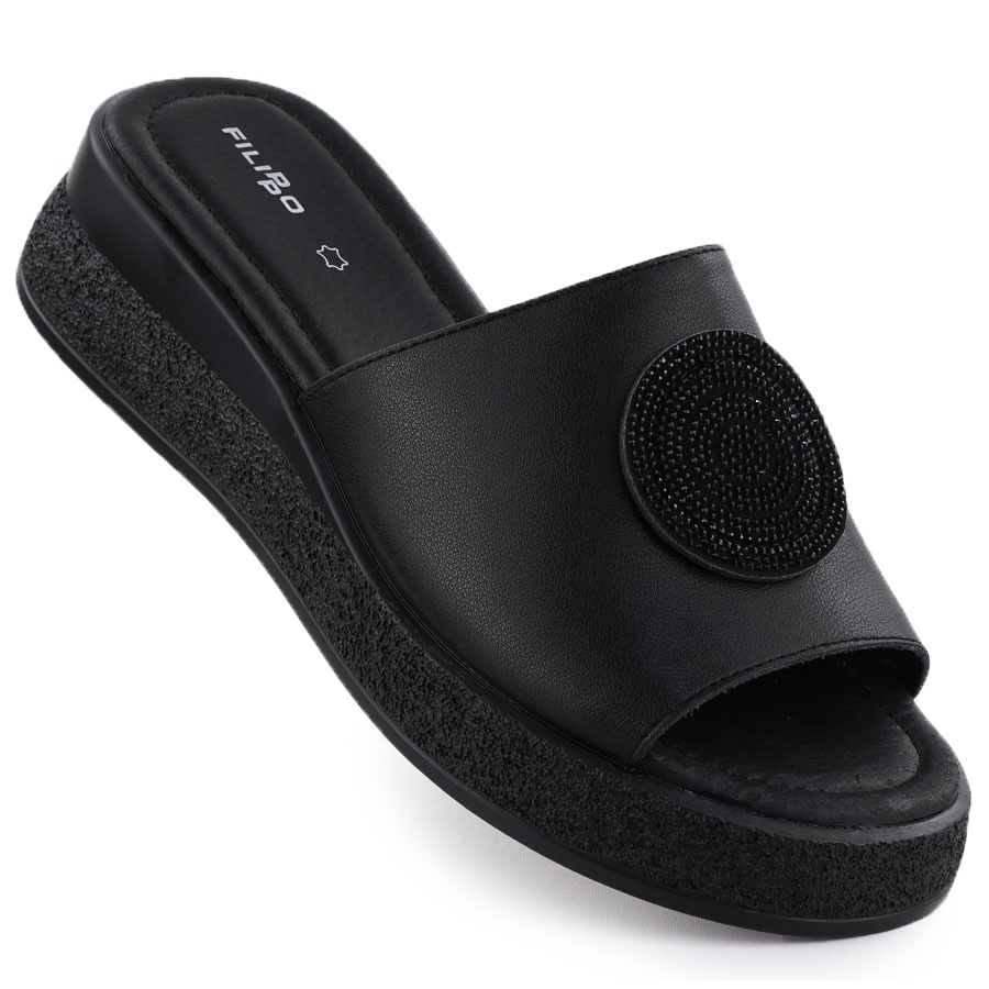 Löydä tyylikkyys ja mukavuus yhdessä! Naisten nahkainen flip -flopsit takit Black Filippo 6987 on ehdotus, joka varmasti herättää huomionne. Valmistettu korkealaatuisesta luonnon nahasta, nämä kääntölehdet yhdistävät muodikkaan suunnittelun käytännöllisyyteen, joka sopii mieluiten päivittäin.