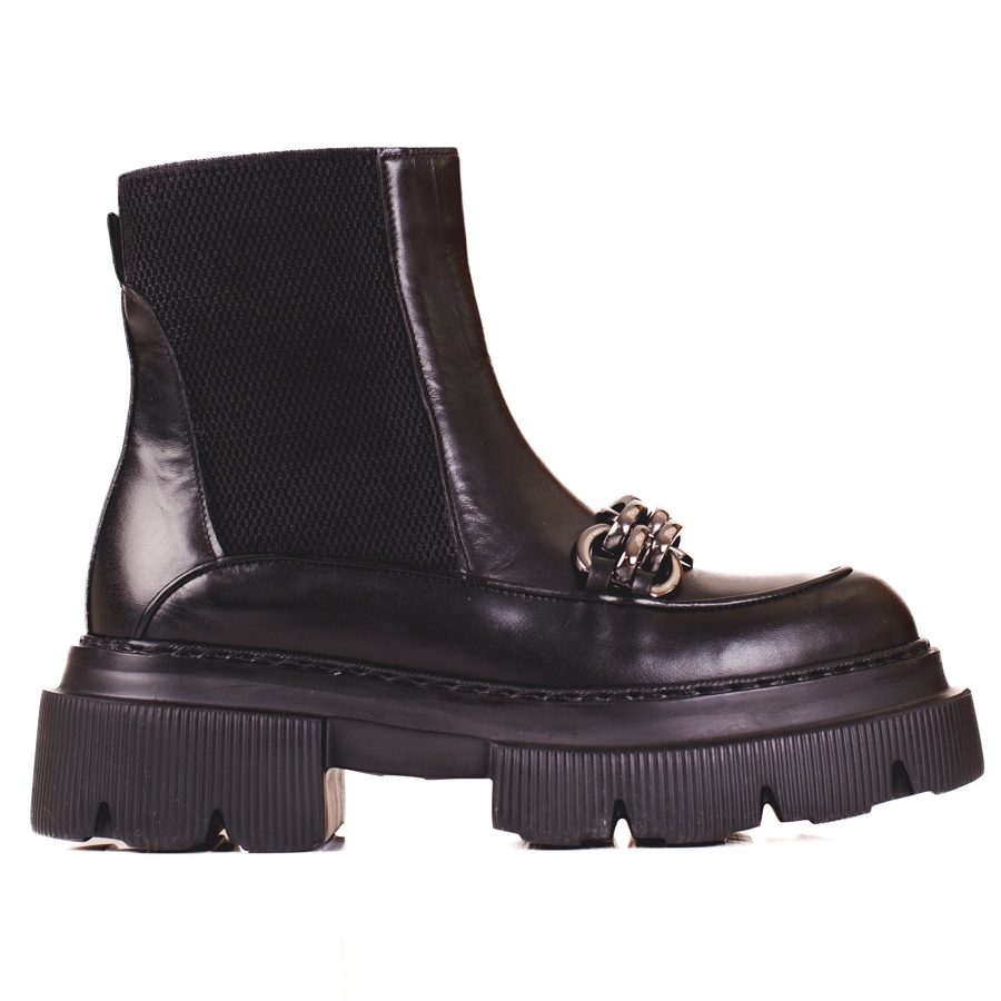 Yksityiskohdat: Naisten nahkaiset Chelsea-saappaat Shelovet-alustalla musta