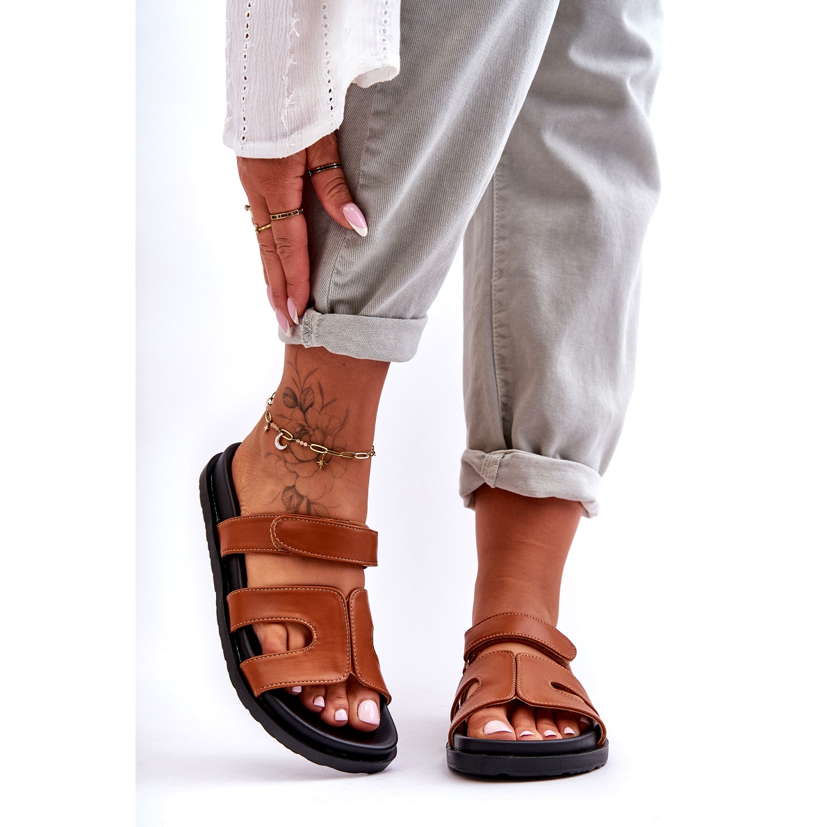 Joia Leather Classic Velcro Flip Flops - Camel (ruskea)