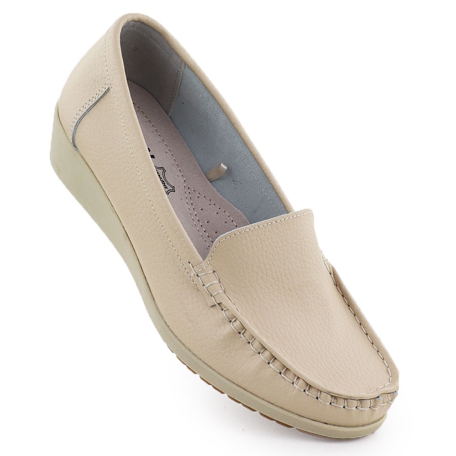 Mokkasiinit beige -sävyllä ovat erittäin monipuolisia - ne sopivat hyvin sekä arjen rento sarjoihin että muodollisempiin luomuksiin. Korkealaatuisen luonnonahan käytön ansiosta sekä sisävuoren yläosassa että sisäpuolella että insertissä tämä jalkine takaa poikkeuksellisen kestävyyden ja mukavuuden. Innovatiivinen mukavuusjärjestelmä tarjoaa optimaalisen jalkatuen, jonka avulla voit nauttia mukavuudesta koko päivän ajan tilanteesta riippumatta.