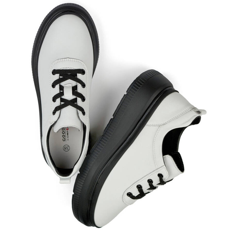 Goodin Naisten nahkaiset lenkkarit mustalla alustapohjalla, valkoinen GD-XF-120A-W