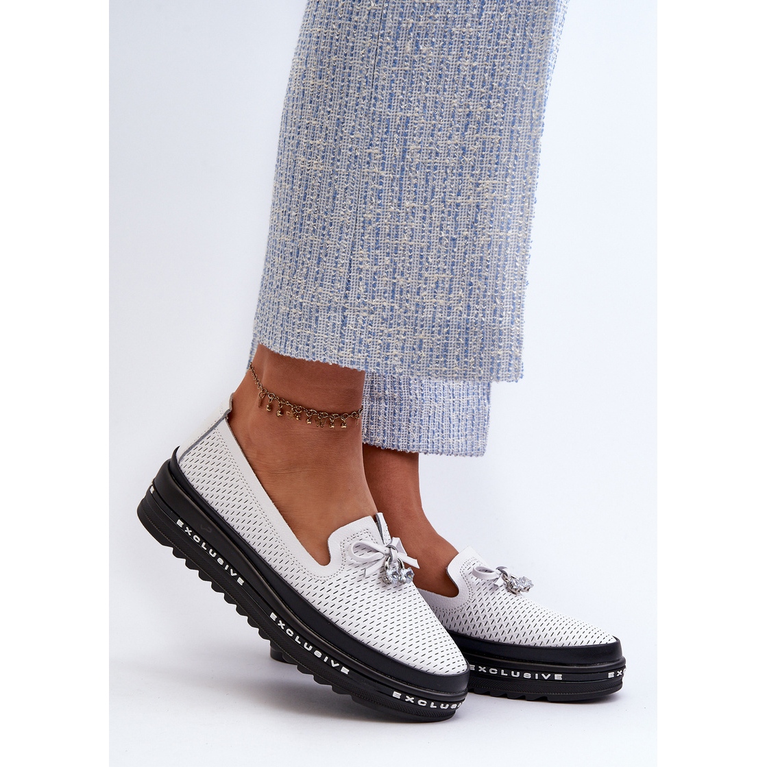 Yksityiskohdat: Naisten nahkaiset mokasiinit S.Barski LR400 alustalla, valkoinen
