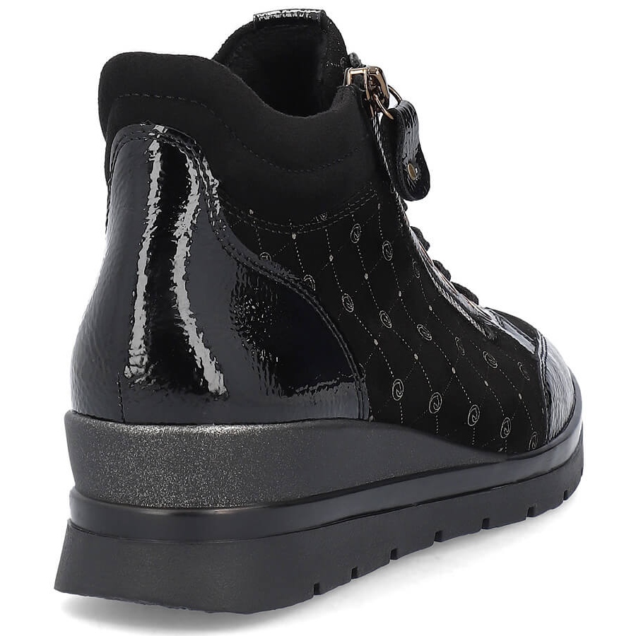 Yksityiskohdat: Rieker Naisten nahkaiset saappaat, patentti Remonte R0773-04 musta