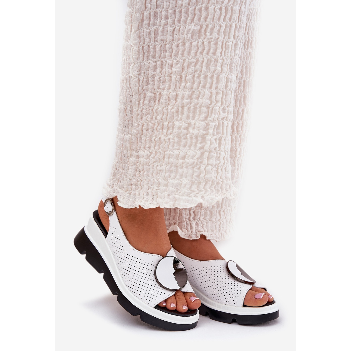 Klassisen leikkauksen ansiosta S. Barski -valkoiset sandaalit vastaavat monia erilaisia tyylejä. Ne sekoittuvat täydellisesti mekkojen, hameiden tai housujen kanssa, ja niiden avoimet suunnittelut antavat keveyden ulkonäköön. Lisäetu on ekologinen pohjallinen, joka välittää jalan mukavuudesta koko päivän.