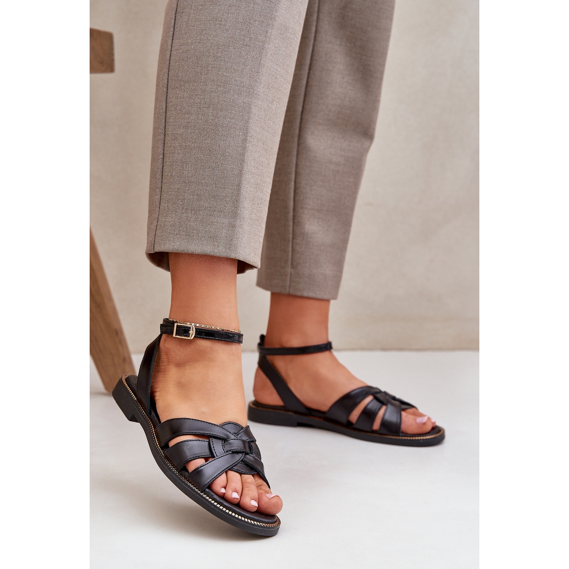 Zazoo Naisten nahkaiset sandaalit litteillä korkokengillä Zazoo 3688 musta