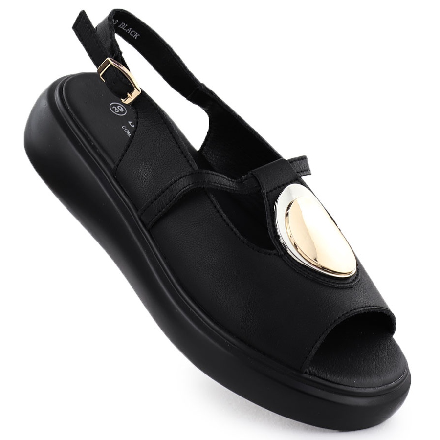Yksityiskohdat: S.Barski Naisten nahkaiset sandaalit Platara Czarne S. Barski GR51-603 musta