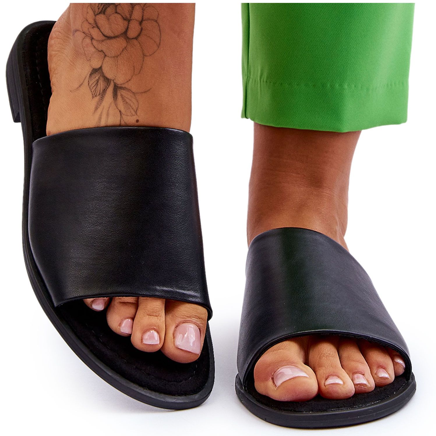Naisten nahkaiset sileät mustat varvastossut Cerise on täydellinen valinta jokaiselle naiselle, joka arvostaa tyylin ja mukavuuden yhdistelmää. Nämä ekologisesta nahasta valmistetut varvastossut tarjoavat paitsi elegantin ulkonäön myös kestävyyttä ja mukavuutta käyttää.