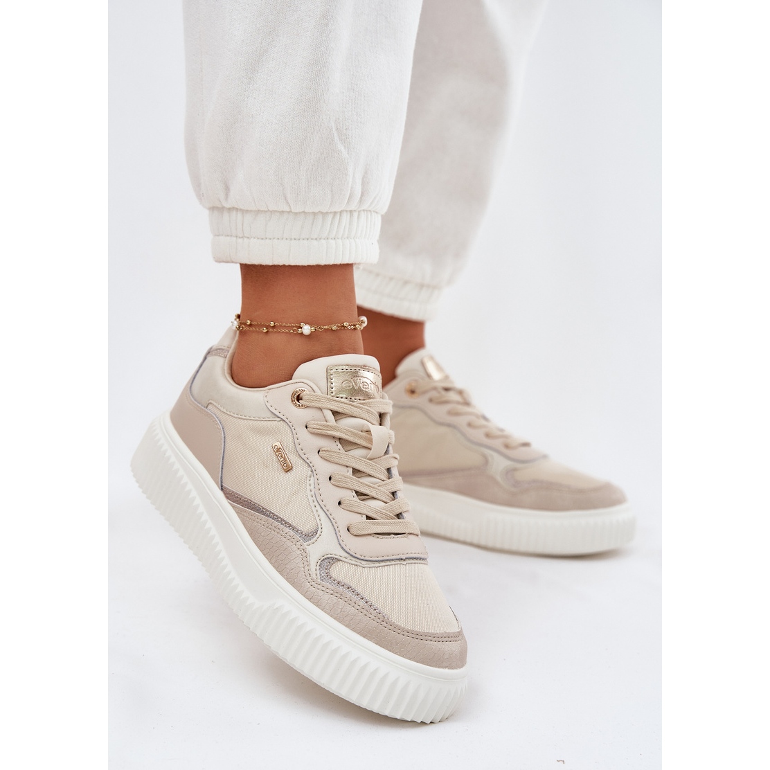 Yksityiskohdat: EVento Naisten nahkaiset tennarit alustalla, beige