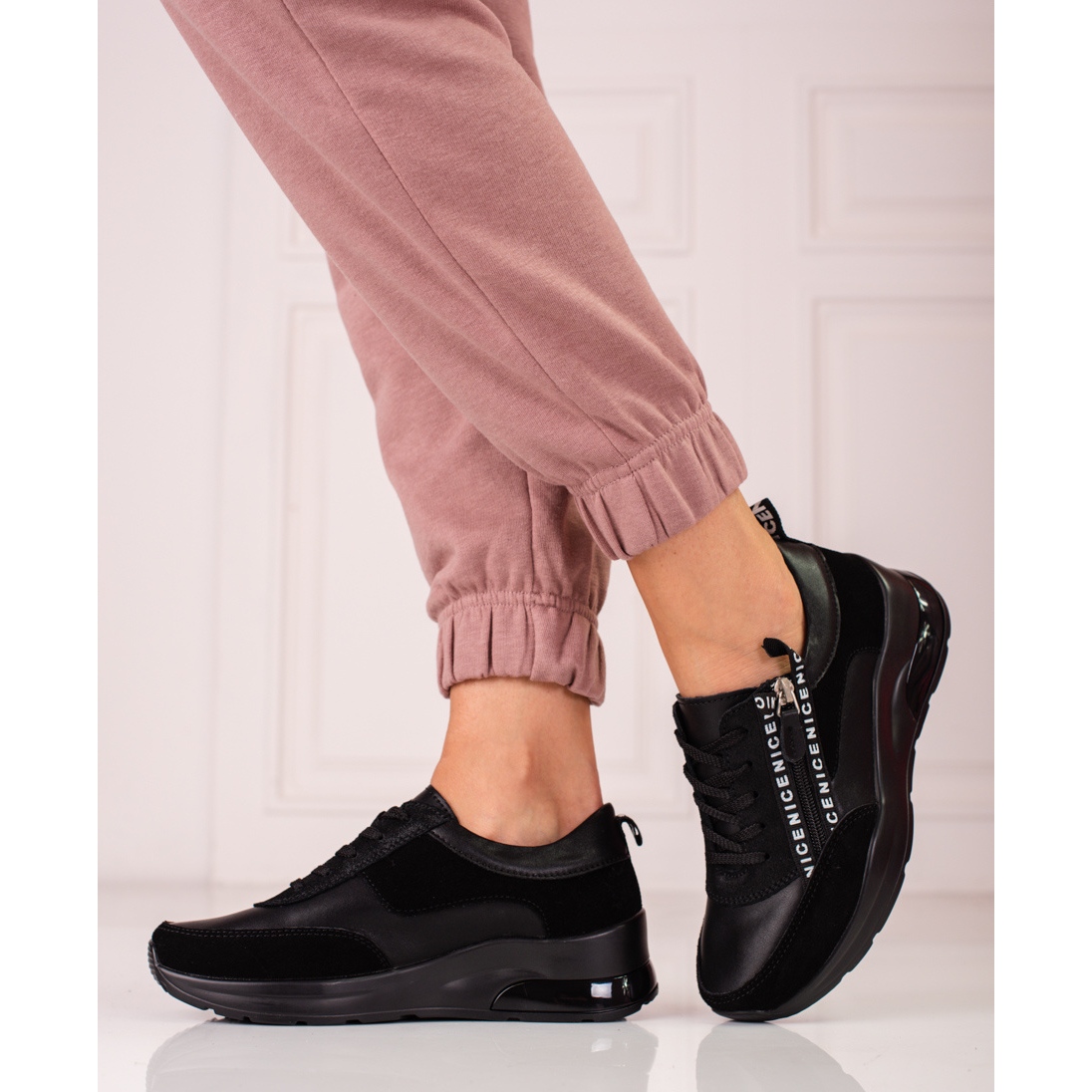 SHELOVET Naisten nahkaiset tennarit, joissa Shelovet-vetoketju musta
