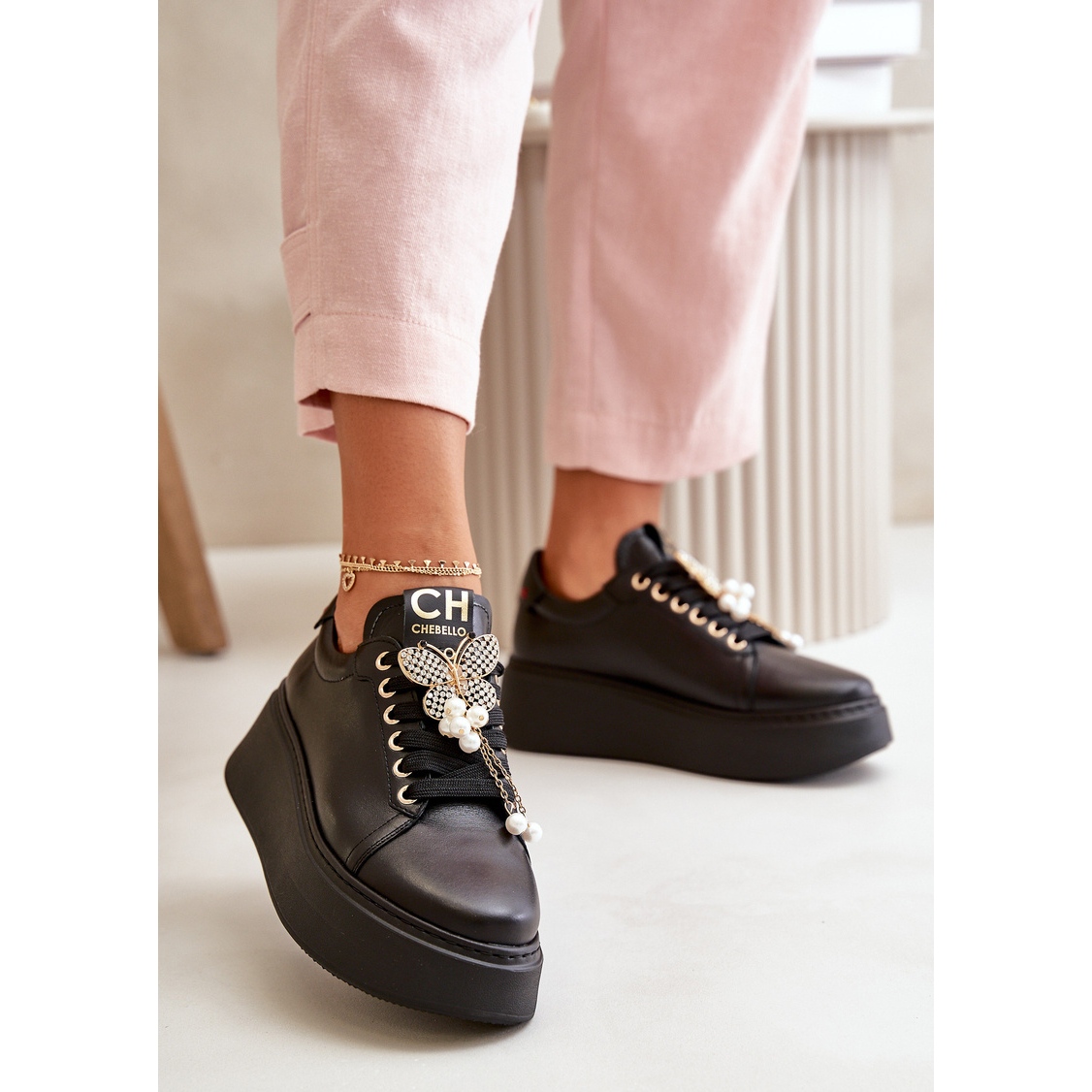 Löydä lavalla ainutlaatuiset naisten nahkaisen lenkkarit Chebellon perhonen, malli 4585 klassisessa mustassa värissä. Nämä tyylikkäät kengät yhdistävät mukavuuden ja tyylikkyyden, mikä tekee niistä täydellisen valinnan päivittäisiin tyyliöihin.