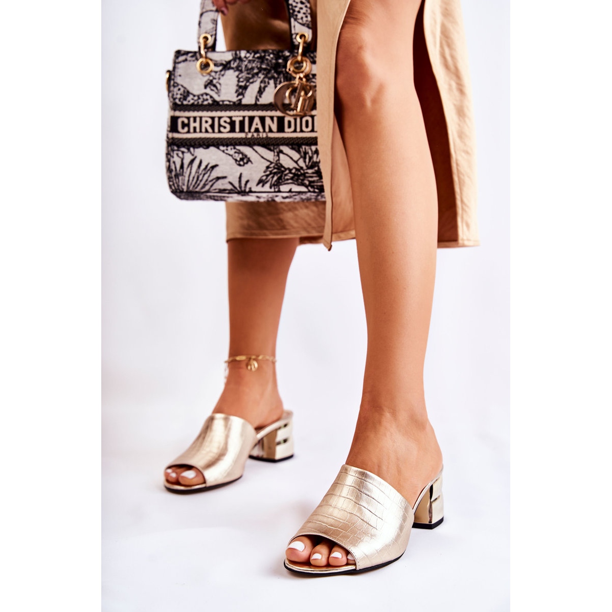 PA2 Naisten nahkaiset tossut krokotiilikuvioinen kantapäässä Golden Perry kultainen
