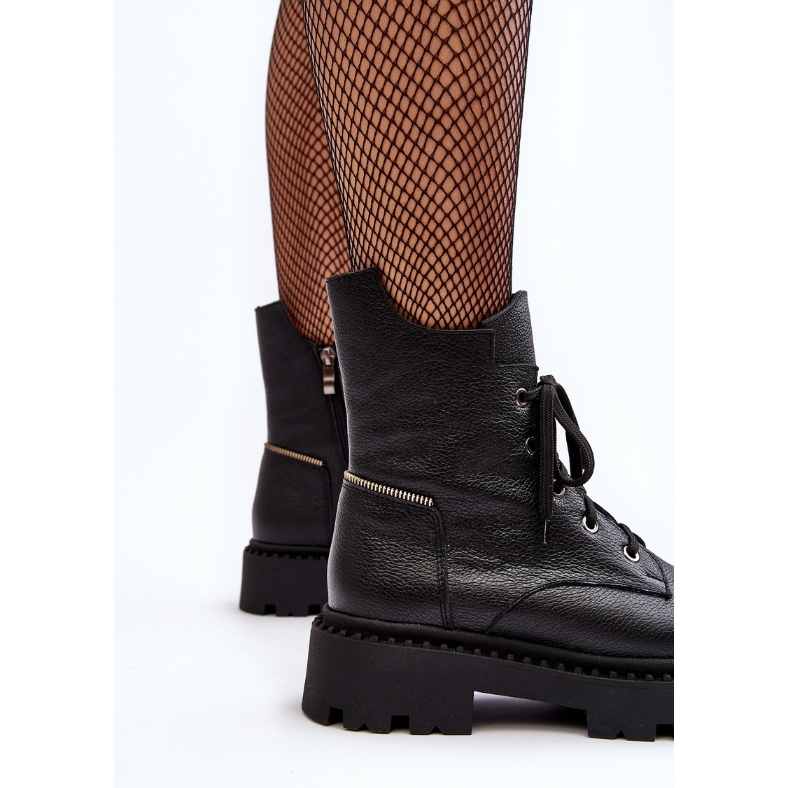 Yksityiskohdat: Naisten nahkaiset trapper-saappaat vetoketjulla Zazoo 949P musta