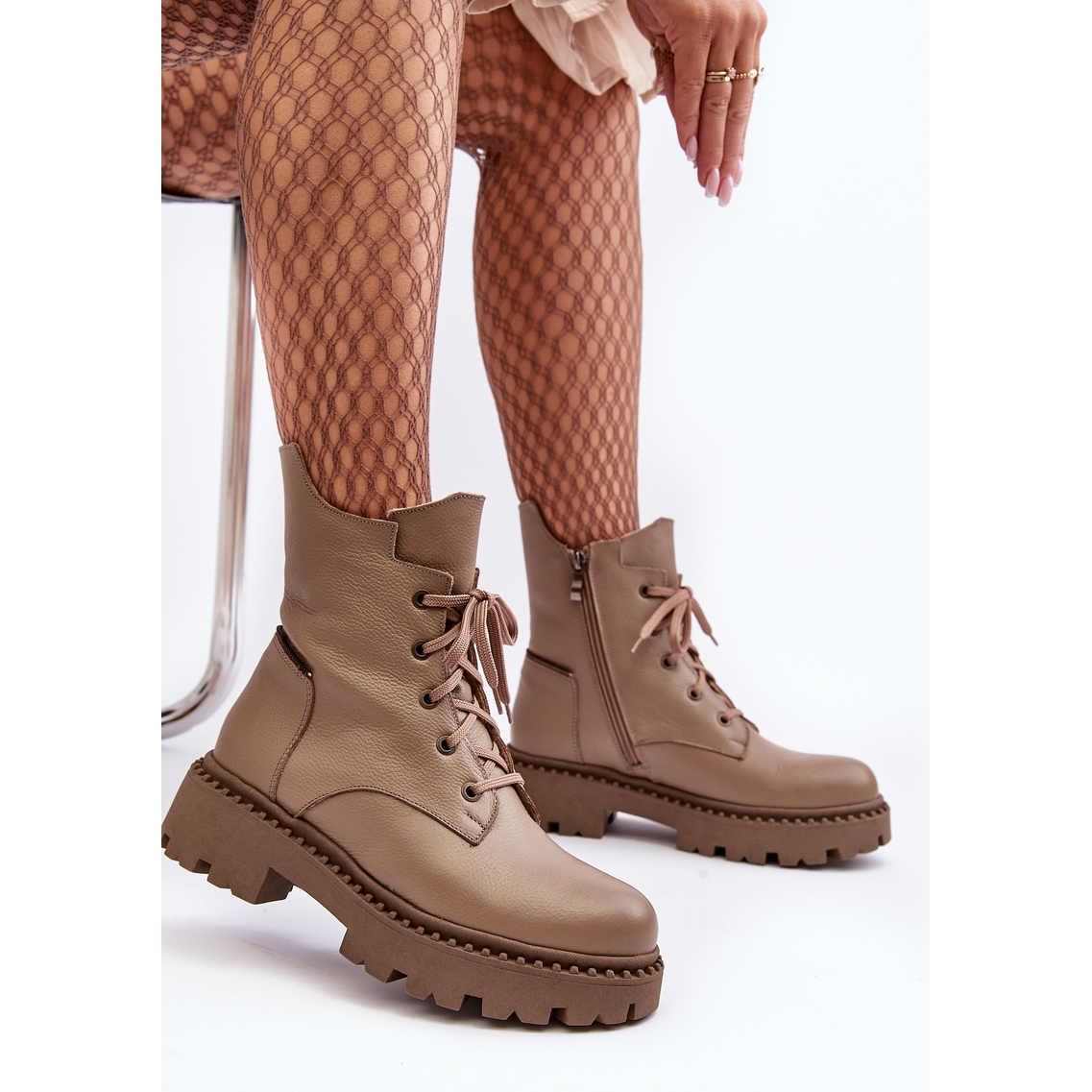 Yksityiskohdat: Naisten nahkaiset Trapper-saappaat vetoketjulla Zazoo 949P Tumma beige