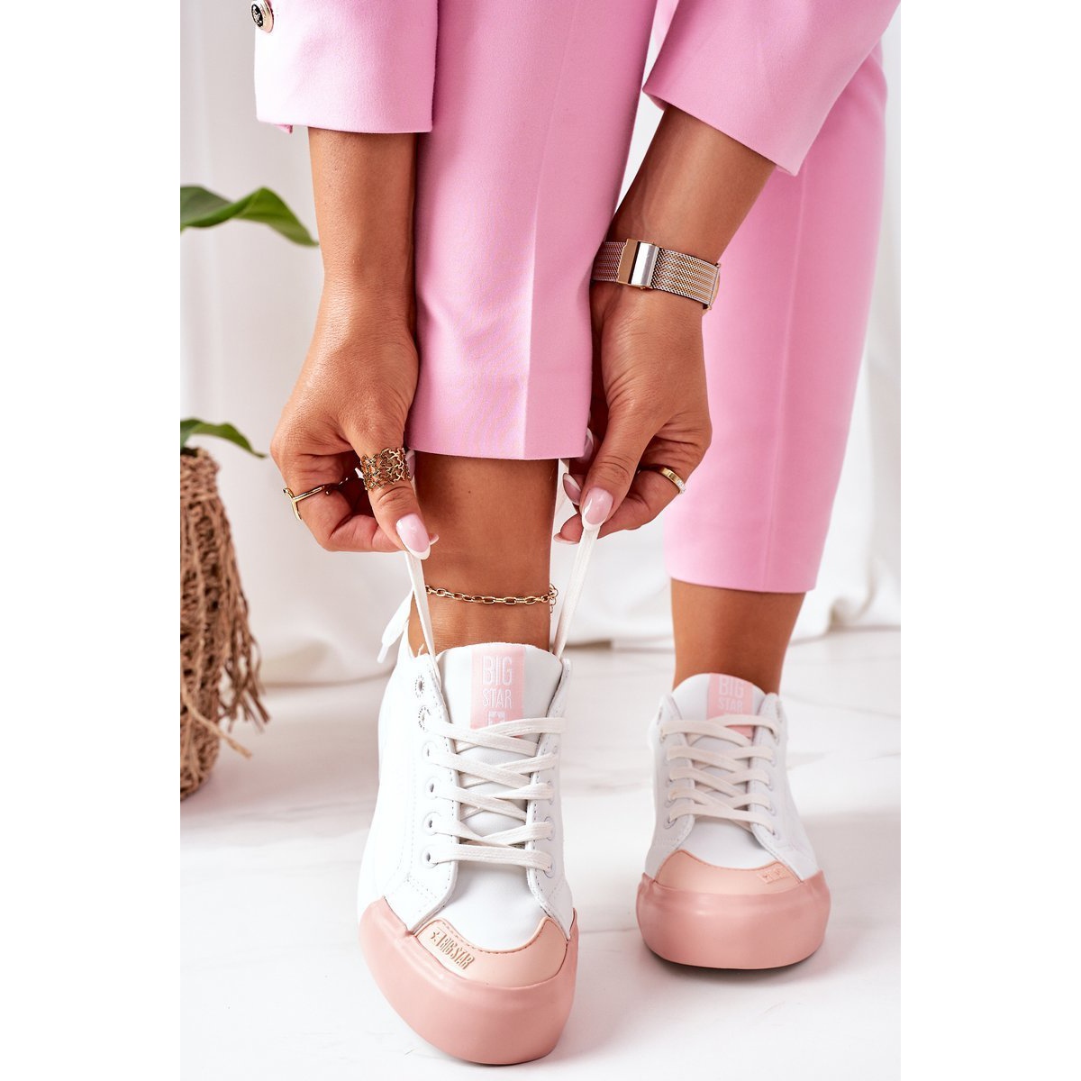 Esittelemme naisten nahkalenkkarit Big Star II274027 viehättävässä valkoisessa ja vaaleanpunaisessa väreissä. Nämä puolalaisen BIG STARin tyylikkäät tennarit ovat täydellinen valinta naisille, jotka arvostavat mukavuuden ja muodikkaan ulkonäön yhdistelmää. Tennarien klassinen muoto sopii täydellisesti eri tyyleihin, niin arkeen kuin arkeenkin.