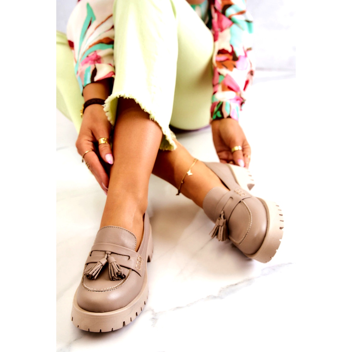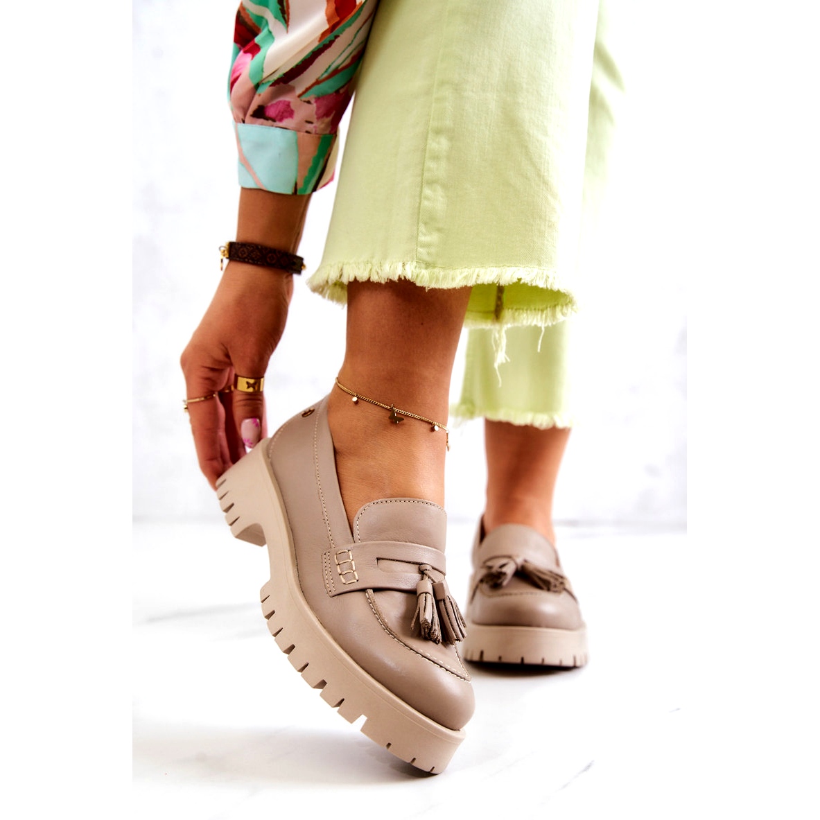 Yksityiskohdat: Naisten nahkakengät Fringes Maciejka 05497-04 Beige