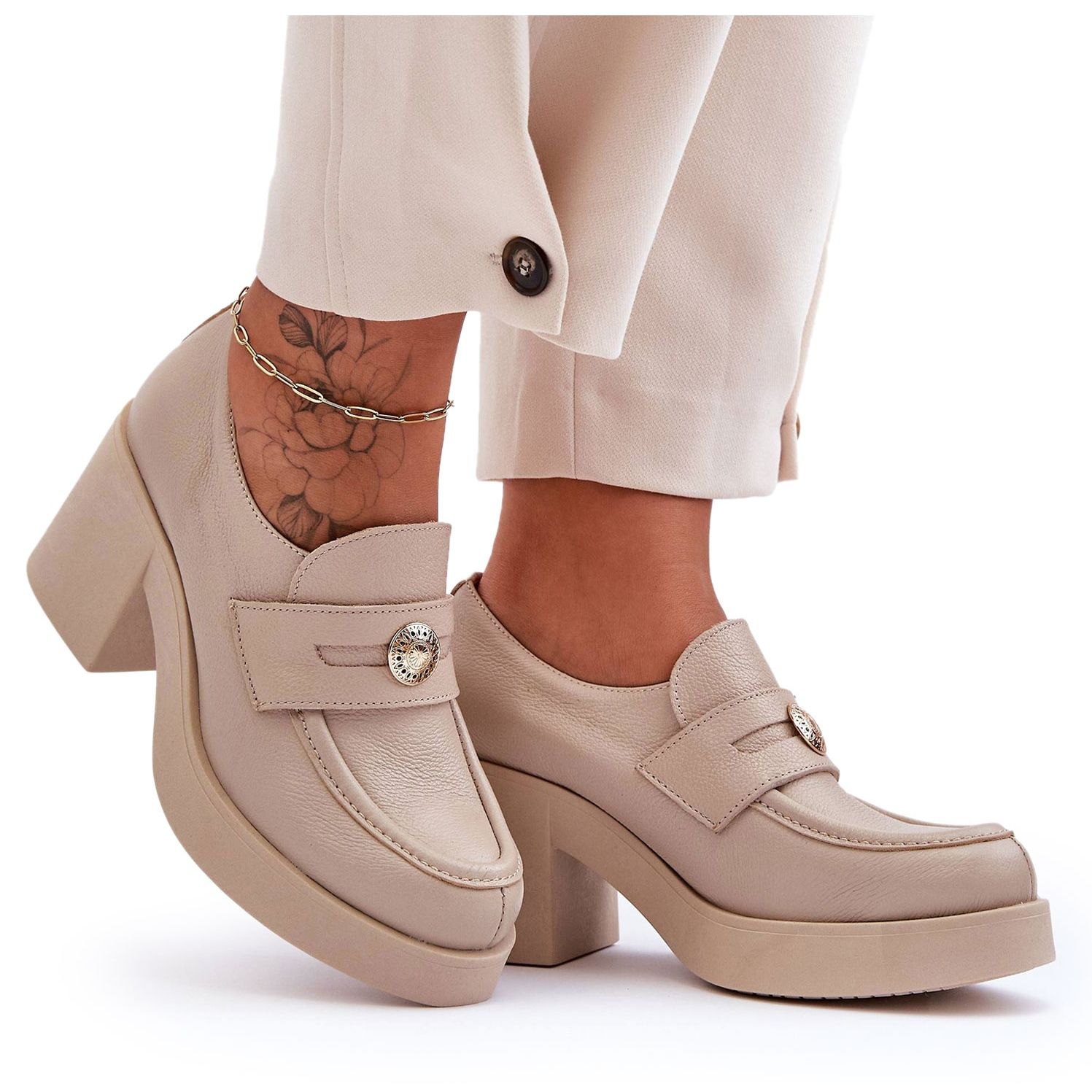 Beige Shoes Lemar Dunadia on universaali malli naisille, jotka arvostavat klassikoita, mukavuutta ja vakaa kantapää. Jos etsit tyylikkäitä nahkakenkiä syksylle ja talvikaudelle-se kannattaa valita ne.