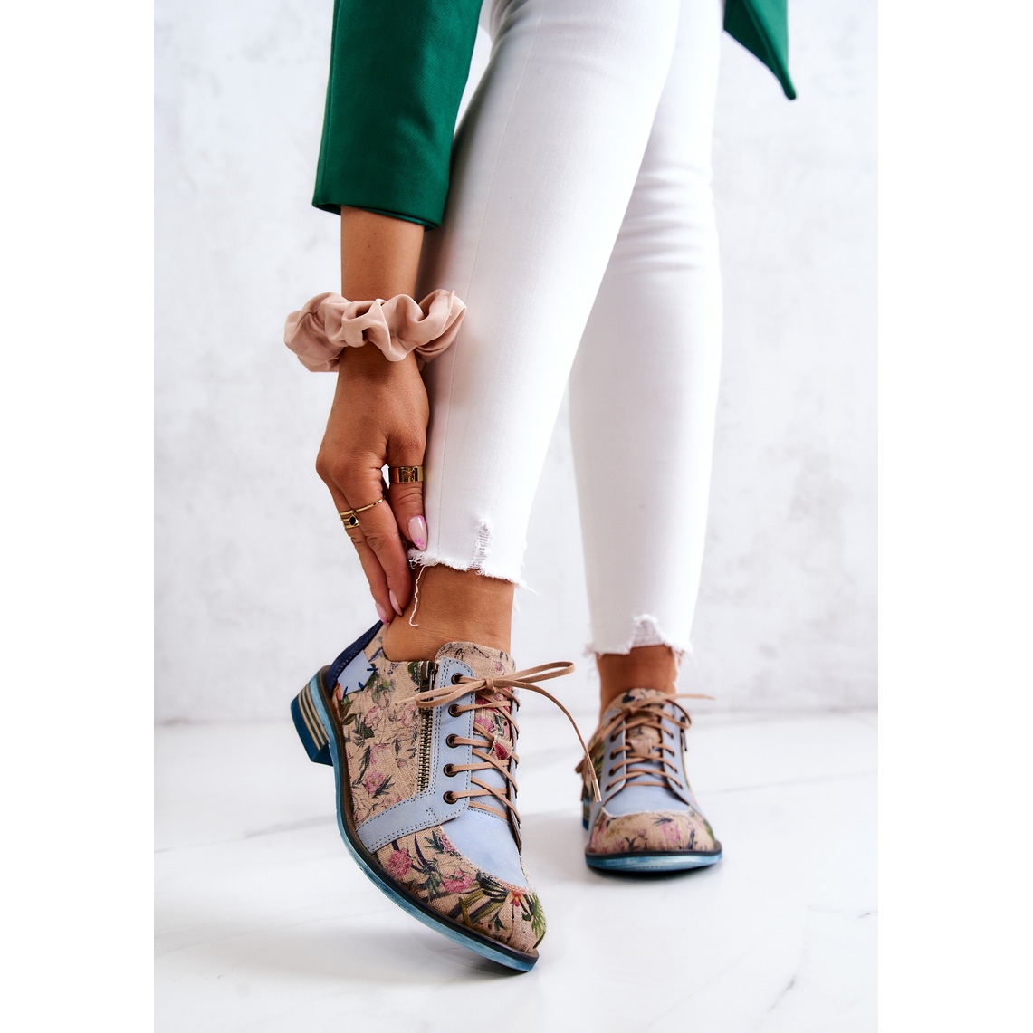 Maciejka Naisten nahkakengät kukilla Maciejka 5096A-34 Sininen monivärinen