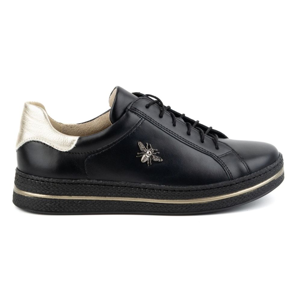 Olivier Women's Shoes Leather Sneakers Style 1190 Black on loistava valinta jokaiselle modernille naiselle, joka haluaa yhdistää mukavuuden tyylikkäästi. Nämä ainutlaatuiset lenkkarit erottuvat hienovaraisesta, herkästä kiiltävästä kultaisesta laastarista ja kultainen kantapää, mikä antaa heille hieman ylellisen hahmon.