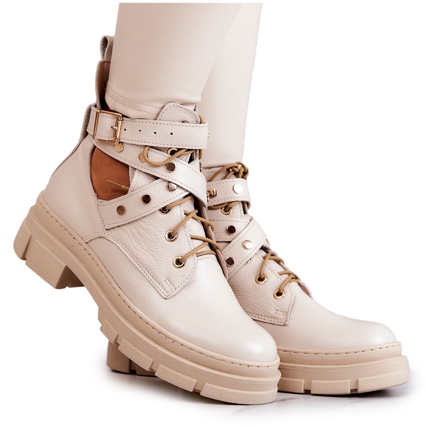 Filipczyk Everly - nahkaiset naisten saappaat leikkauksilla, kevyt beige