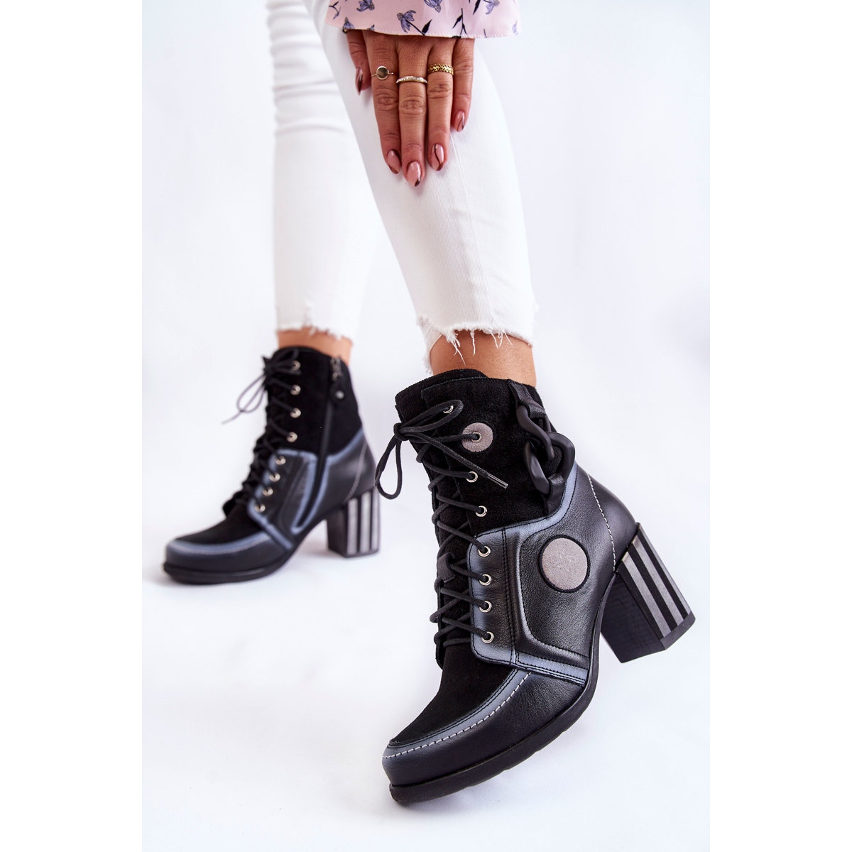 Maciejka Naisten nahkasaappaat Maciejka 05599-01 Musta monivärinen