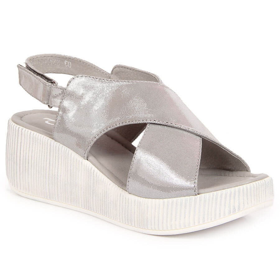 Naisten Dolce Pietron hopeiset nahkaiset kiila sandaalit ovat eleganssin ja nykyaikaisuuden kvintessenssi. Nämä tunnetun puolalaisen valmistajan muodikkaat sandaalit on valmistettu korkealaatuisesta luonnonnahasta, ja niissä yhdistyvät tyyli ja mukavuus.