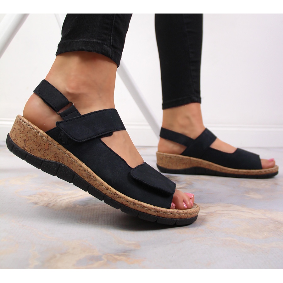 Yksityiskohdat: Naisten nahkasandaalit Rieker V7170-14 -kiilalla laivastonsininen