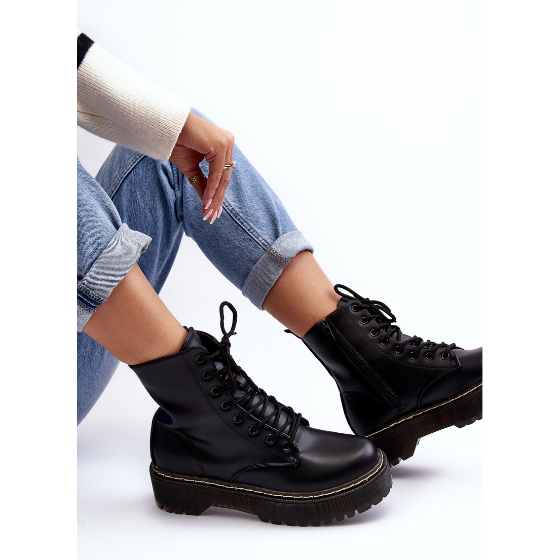 Tutustu klassikoihin modernissa versiossa naisten mustien Maddis Trapper -nauhojen nilkkurien ansiosta! Nämä tyylikkäät ekologisesta nahasta valmistetut nilkkurit ovat täydellinen valinta naisille, jotka haluavat yhdistää tyylin mukavuuteen. Kiinteällä, tasaisella kantapäällä ja paksulla pohjalla, jossa on kulutuspinta, ne takaavat vakauden ja mukavuuden kaikissa olosuhteissa.