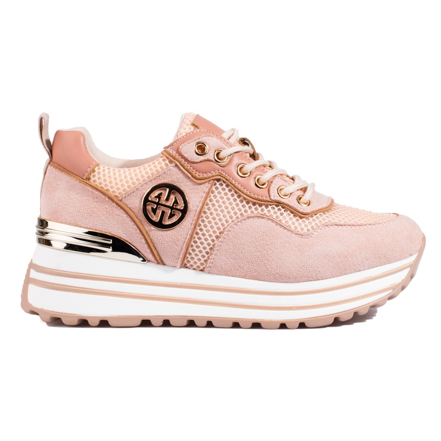 Tyylikkäät lenkkarit W. Potocki herkällä vaaleanpunaisella jauhesävyllä - yhdistelmä urheilutyyliä muotihahmoon. Matala, pitsi -uP -kengät, joissa on ekologinen mokkanahka, näyttävät kevyiltä ja naisellisilta, ja ovat samalla mukavat ja käytännölliset joka päivä.