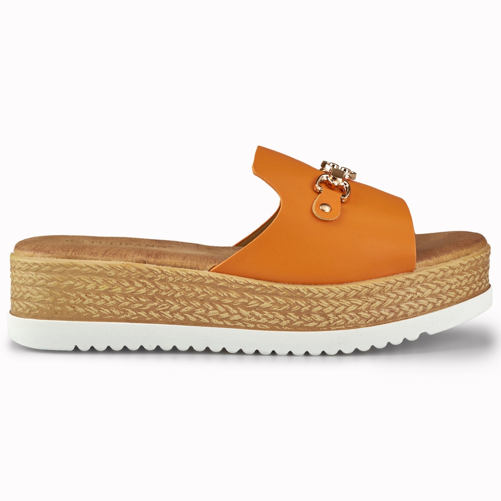 Yksityiskohdat: Naisten oranssit tossut, joissa on matala kiila