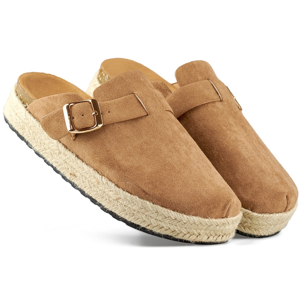 Yksityiskohdat: Naisten päällystetyt espadrillit soljella, vaaleanruskea