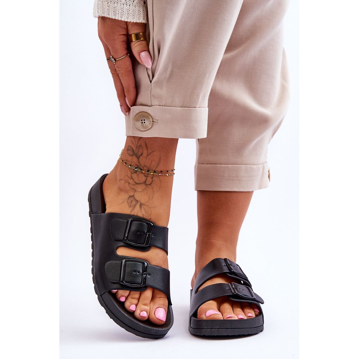 Löydä mukavuus ja tyyli naisten Vertigo-tasovarvastossuilla tyylikkäässä mustassa värissä! Nämä ainutlaatuiset varvastossut on valmistettu huolellisesti korkealaatuisesta ekonahasta, mikä tekee niistä paitsi ympäristöystävällisiä, myös erittäin mukavia. Kahden leveän hihnan ansiosta, jotka on kiinnitetty säädettävillä soljeilla, ne sopivat täydellisesti mihin tahansa jalkaan, mikä varmistaa vakauden käytön aikana.