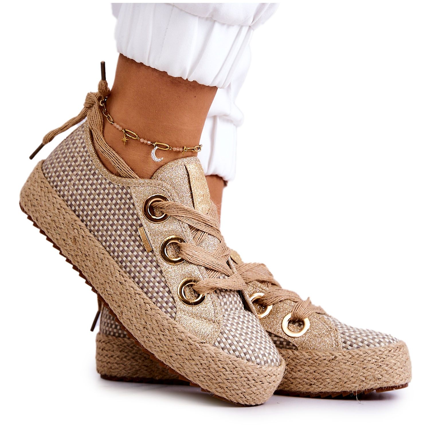 Yksityiskohdat: Naisten punotut tennarit Big Star JJ274392 beige ja kulta