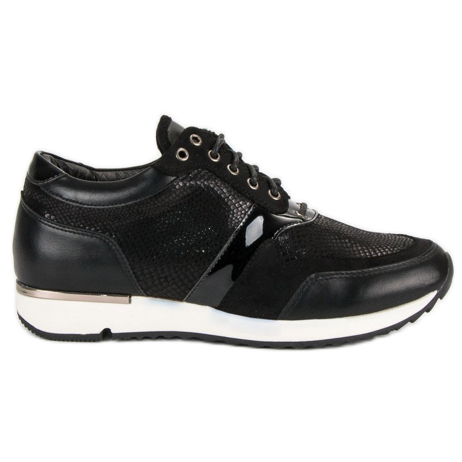 Filippon mustat casual naisten tennarit ovat täydellinen ratkaisu naisille, jotka haluavat yhdistää tyylin mukavuuteen. Nämä muodikkaat kengät sopivat täydellisesti jokapäiväiseen, urbaaniin ilmeeseen ja lisäävät siihen tuoreutta ja omaperäisyyttä. Valmistettu ekologisesta nahasta kolmessa mielenkiintoisessa tekstuurissa - sileä, patentoitu ja käärme - ne herättävät huomion ja erottuvat klassisten mallien taustasta.