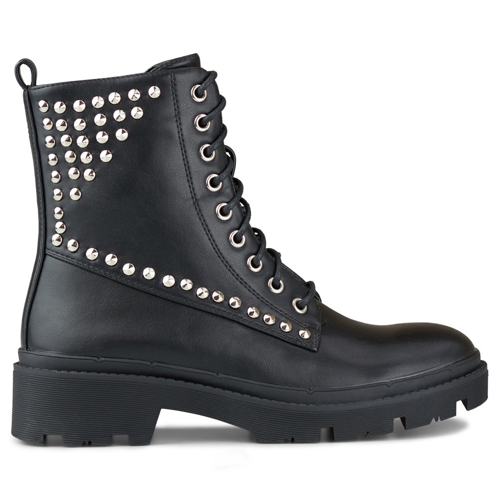 Yksityiskohdat: Naisten rock-työläiset eko-nahasta musta