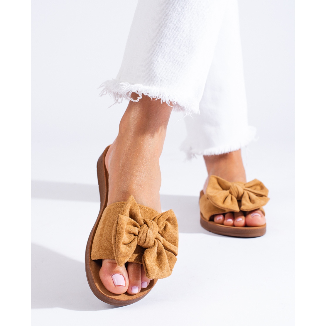 Ruskeat naisten tossut rusetilla Shelovetilta ovat täydellinen valinta kevät- ja kesäpäiviin. Nämä rennot varvastossut ilahduttavat yksinkertaisella mutta tyylikkäällä muotoilulla, joka sopii täydellisesti jokapäiväiseen tyyliin.