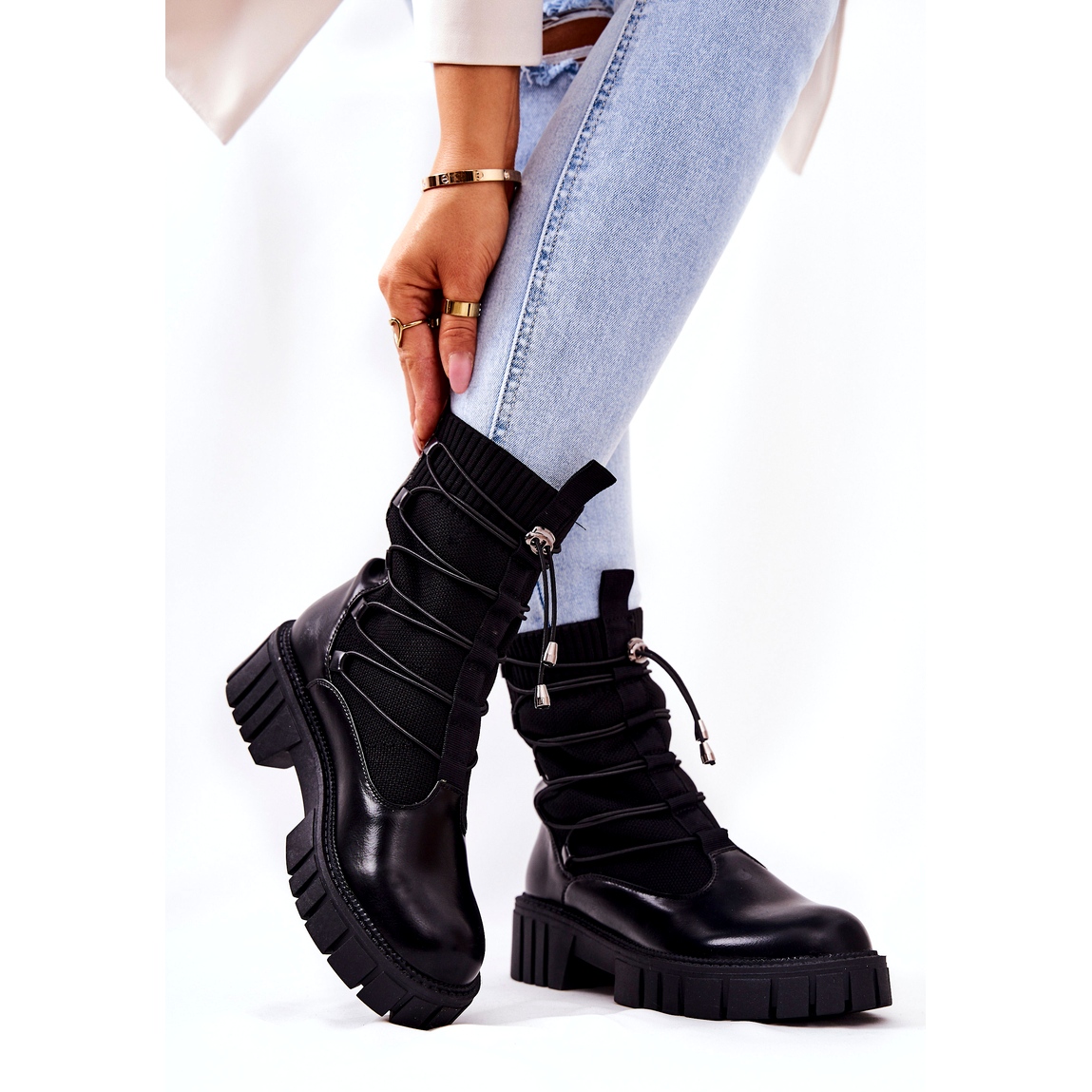 Basido -saappaat, joissa on basido -sukka - musta, tyylikäs ja mukava. Massiivisen, muodikkaan pohjan yhdistelmä pehmeällä, sukan yläosalla antaa raa'an ja naisellisen ilmeen vaikutuksen. Täydellinen viileämpiin päiviin lempeän lämpenemisen ansiosta turkin muodossa.