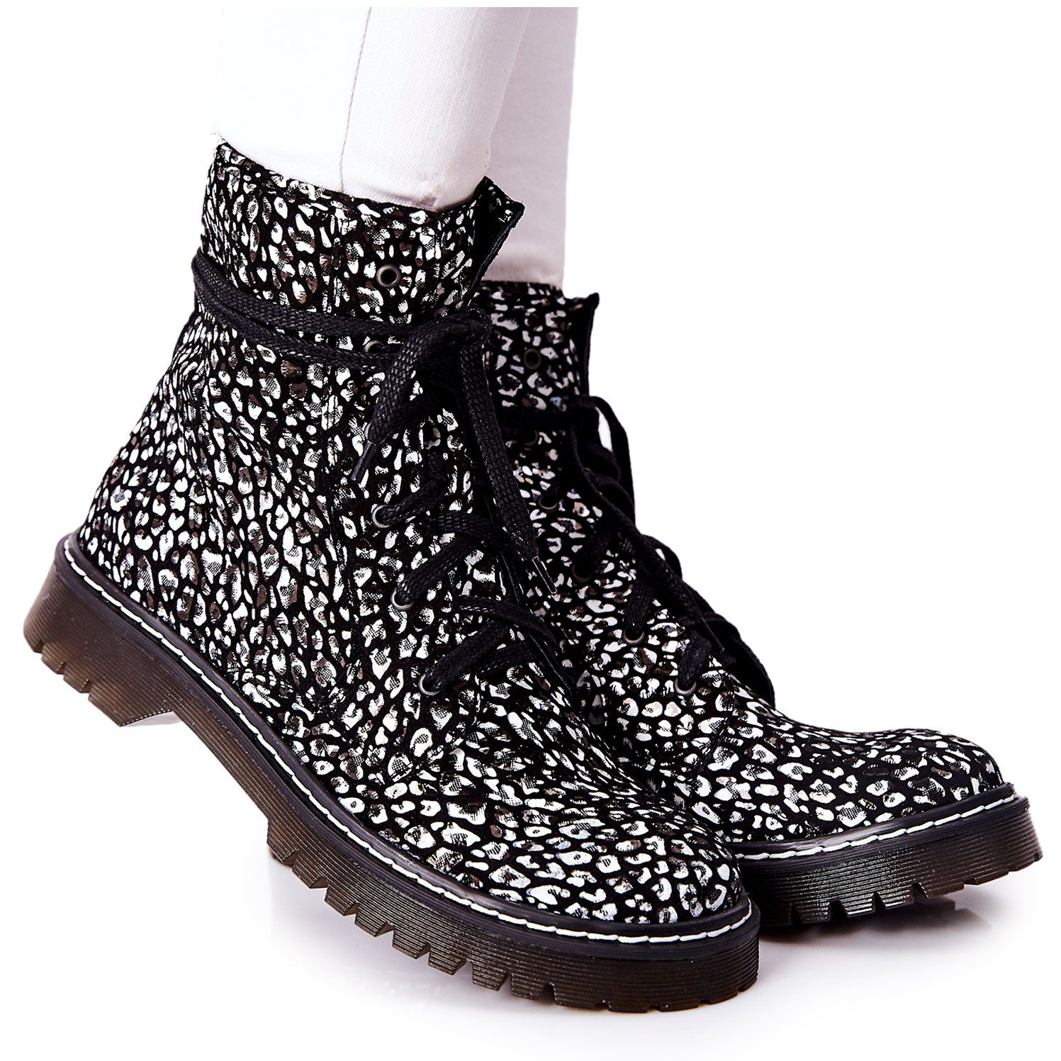 Yksityiskohdat: Naisten saappaat Glany Workers Maciejka Musta-Valkoinen 01609-48